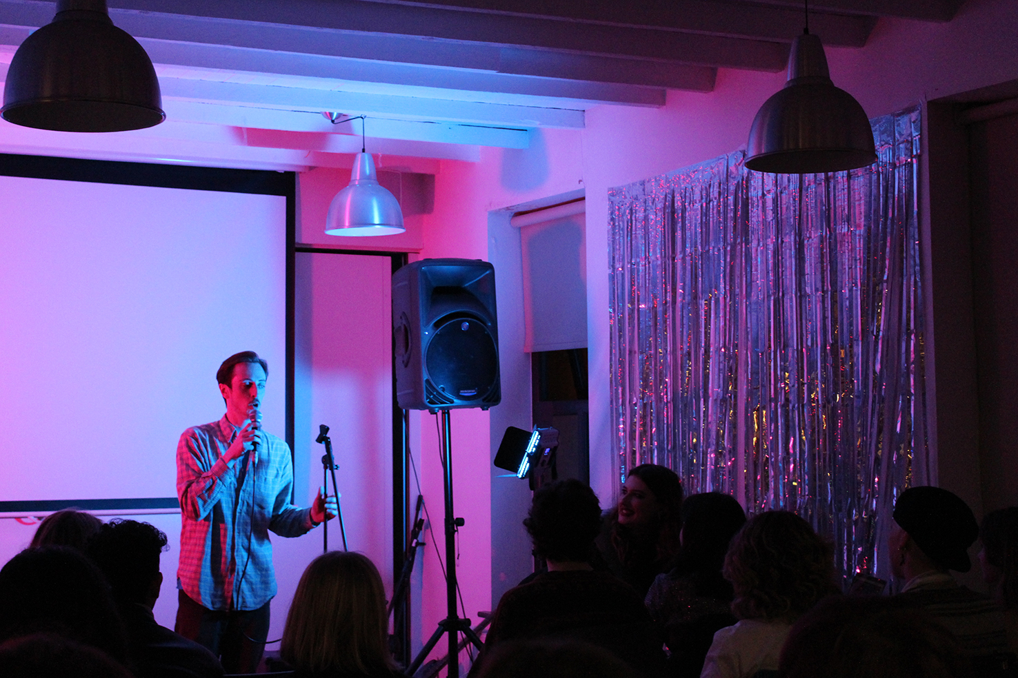 Above: Hosting Dark Times Karaoke Club, a night of karaoke performance by students from Manchester School of Art (MMU), 2022